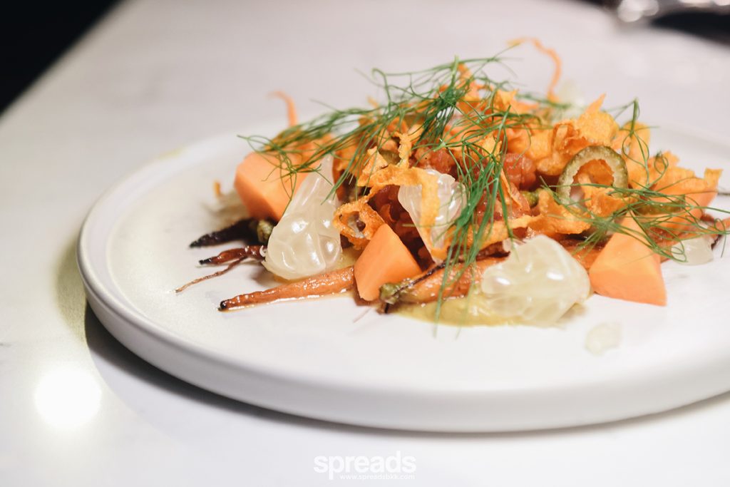 เราว่าอาหารของเขามีจุดเด่นที่องค์ประกอบอันหลากหลาย พร้อมที่จะเอารสชาติมาตัดรส เพิ่มสัมผัสเพื่อตัดความน่าเบื่อ รวมกันเป็นหนึ่งจานที่เป็นหนึ่ง journey ในตัว แปลง่าย ๆ ว่า สนุก อร่อย! แถมเชฟแดนยังใช้ความเอเชียของตัวเองได้เก่งมากในอาหารลูกผสมแนวนี้