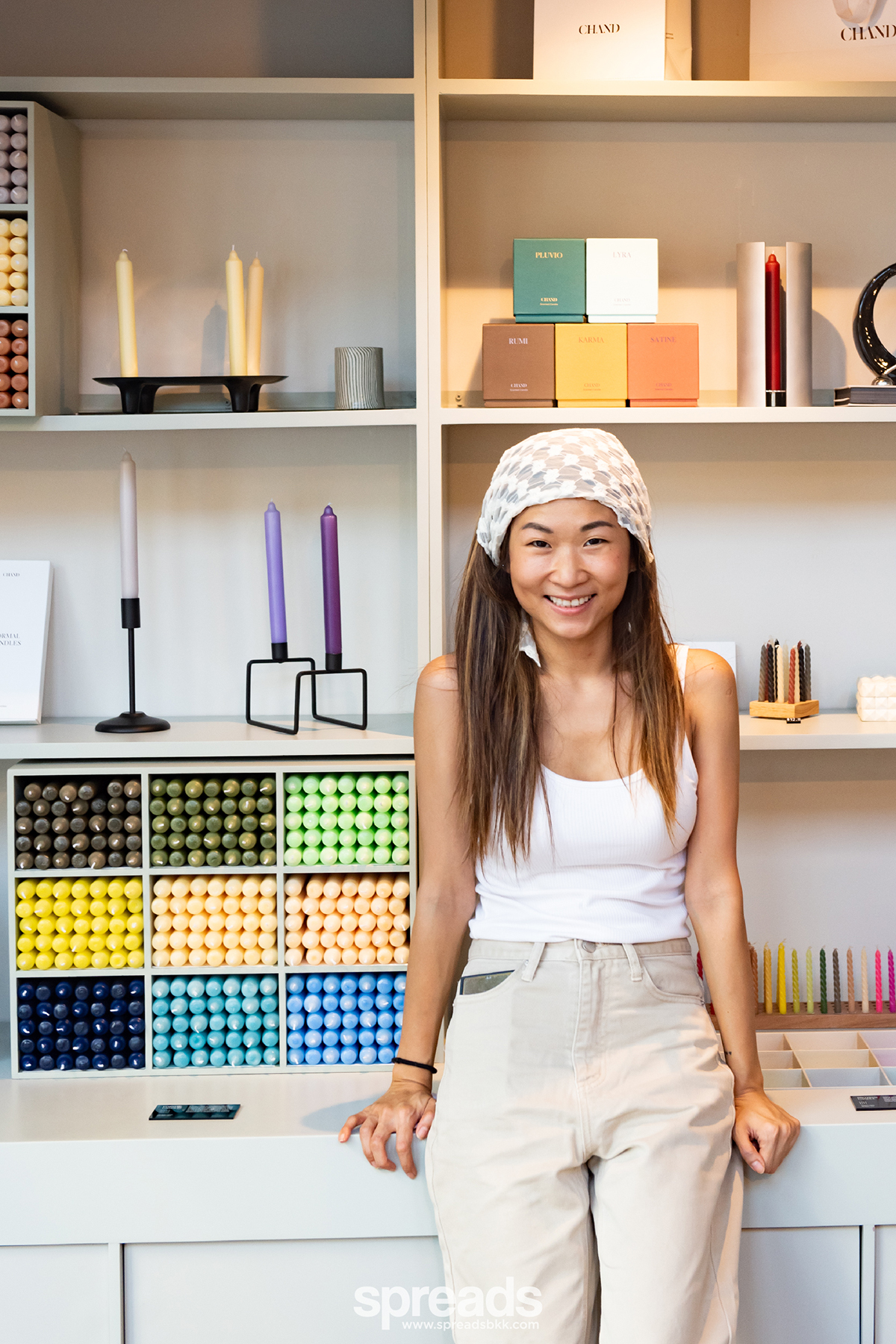 “จริงๆ เอ็มชอบเทียนมานานแล้ว เราไปเที่ยวไหนก็ซื้อเทียนมาสะสมเต็มไปหมด พอมีโอกาสได้ทำ Chand เราเลยอยากให้เห็นว่าเทียนเป็นส่วนหนึ่งของชีวิตได้ในทุกโอกาส ที่ต่างประเทศเทียนแทบจะอยู่ในชีวิตผู้คนตลอดเวลา เทียนตกแต่งบ้าน จุดเทียนทานข้าว จุดเทียนสร้างบรรยากาศ จุดเทียนฉลองวันพิเศษ หรือจุดเทียนสำหรับตัวเองเฉย ๆ ก็ตาม อยากให้คนเห็นว่าเทียนไม่ได้มีแค่เทียนหอมเท่านั้น เราเลยตั้งใจทำเทียนให้สามารถส่วนหนึ่งของช่วงเวลาต่าง ๆ ในชีวิตได้” เอ็มเล่าให้ฟัง