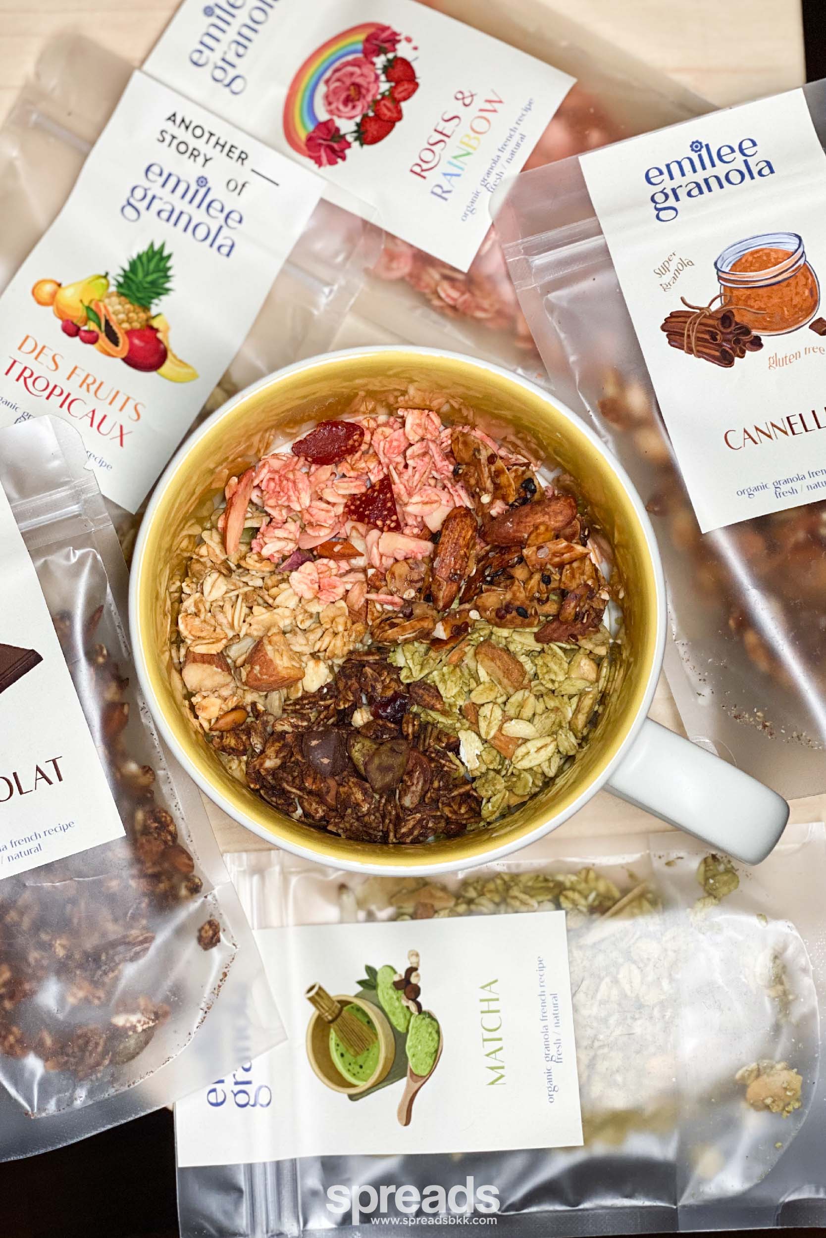 Emilee Granola เป็นผลงานของ เม และไนซ์ สองเจ้าของร้าน Paris Mei ที่มีประสบการณ์ทำงานร้านขนมฝรั่งเศสมาก่อน ทั้งยังชื่นชอบรสชาติและวัฒนธรรมอาหารแบบฝรั่งเศสจนแสดงออกมาทั้งทางอาหารและการตกแต่งร้านแบบเก๋ละมุน รวมถึงเจ้ารสเข็นกราโนลาสีครีมของ Emilee Granola ที่เพิ่งเปิดหน้า Another Story ด้วย