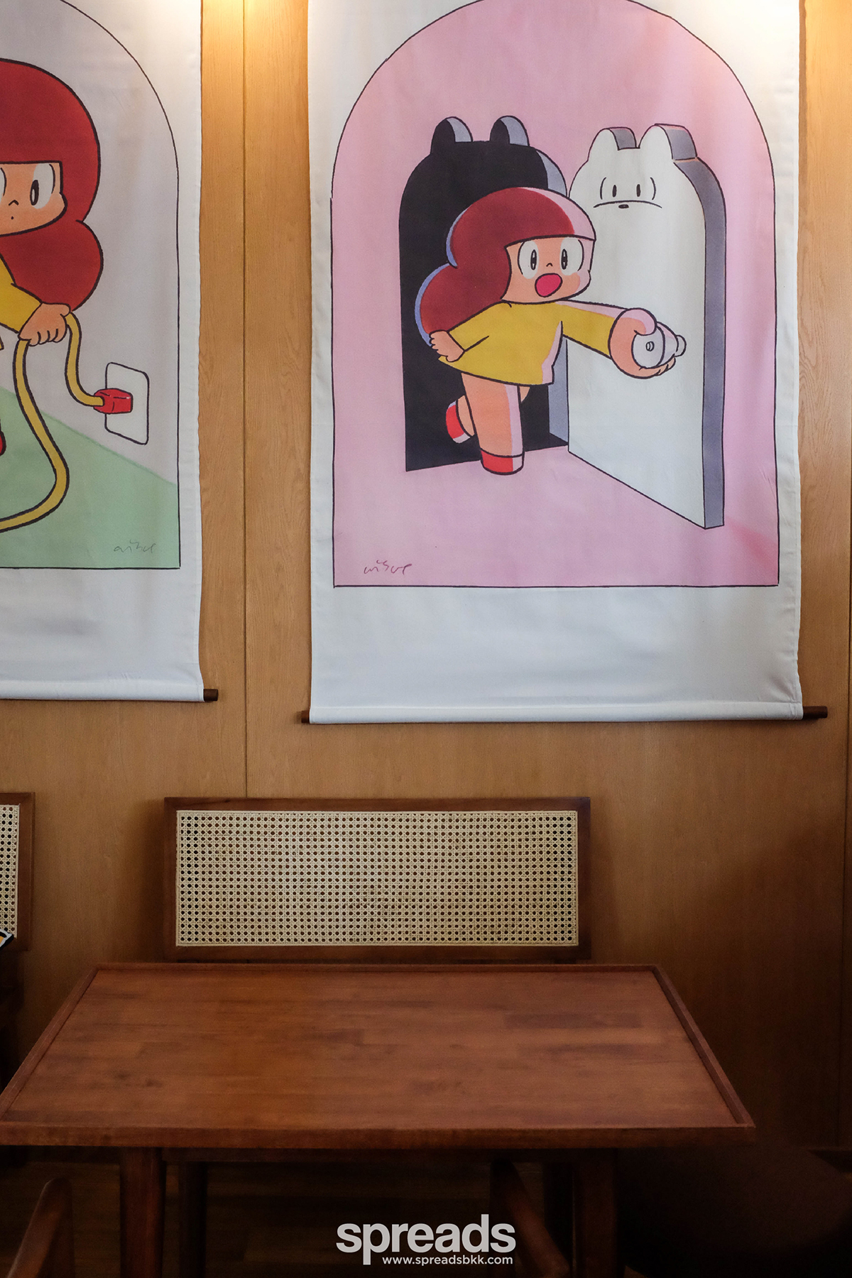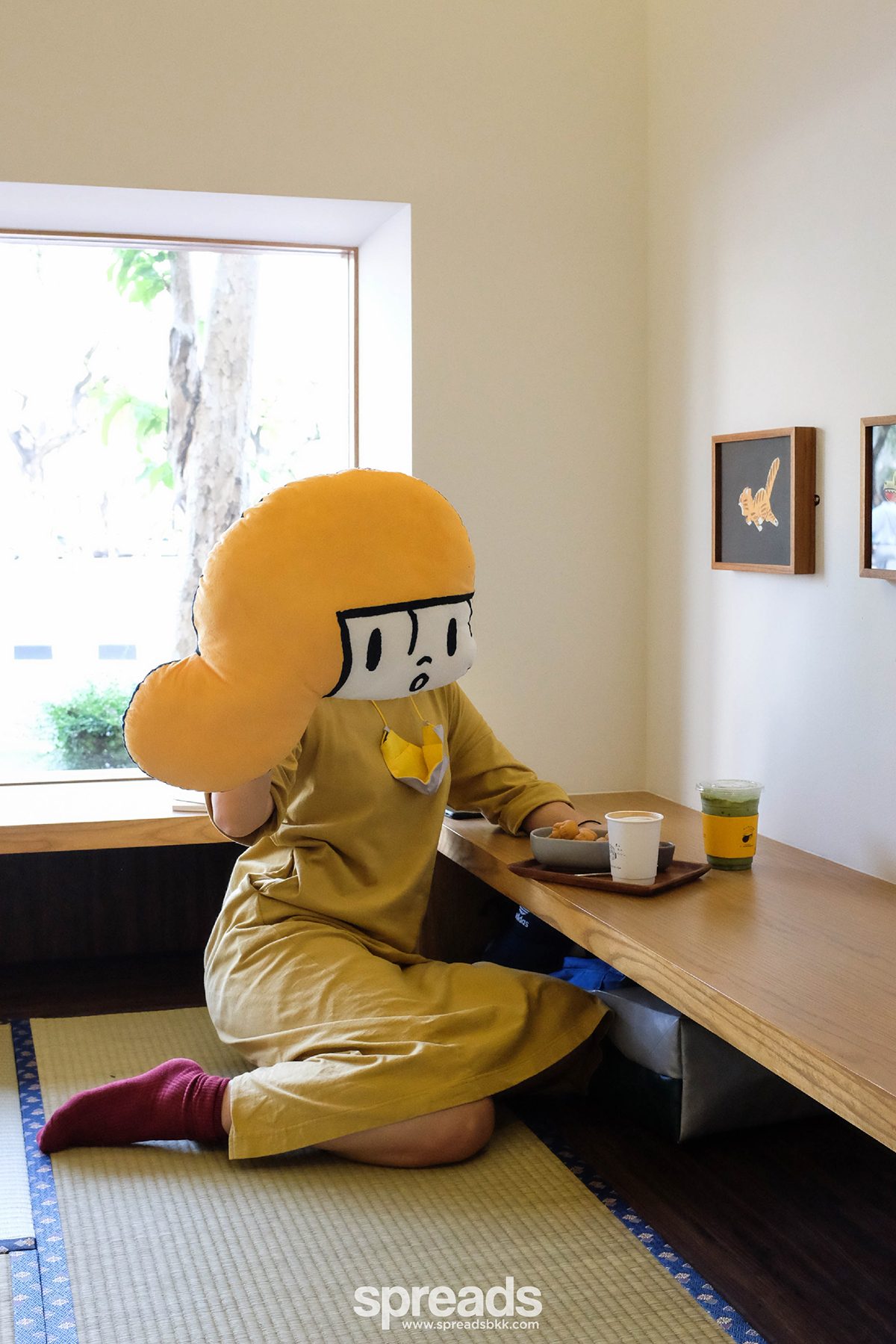 ปีนี้น้องมะม่วง-สาวน้อยเจ้าของผมทรงลูกมะม่วง ในชุดเดรสสีเหลือง และรองเท้าสีแดง หนึ่งในตัวละครในการ์ตูนของวิศุทธิ์ขยับขยายออกมาตรงตึกแถวห้องติดกันในรูปแบบคาเฟ่ ทำเรายิ่งใจเต้นไปใหญ่ ด้วยคาแรกเตอร์ความสดใส มีพลังบวก มองโลกในแง่ดี รวมกับสีเหลืองอันเป็นเอกลักษณ์และผองเพื่อนในการ์ตูนเรื่องเดียวกัน บวกกับรสนิยมการแต่งร้านที่เรียบง่ายแต่ฟังก์ชัน และการจัดบรรยากาศของร้านที่คุมโทนอบอุ่น ใช้ไม้สีอ่อนเป็นหลัก มีตุ๊กตาน้องมะม่วงและภาพจากการ์ตูนอยู่ในร้านอย่างพอเหมาะพอดี (รวมถึงของน่ารักกุ๊กกิ๊กที่ซื้อกลับบ้านได้อีก) ไหนจะมุมปูเสื่อญี่ปุ่น เจาะช่องเป็นหน้าต่างบานยาว ให้ขึ้นไปนั่งสบาย ๆ ดูวิวเมืองเก่าอีก กลายเป็นคาเฟ่สุดชิลที่ถ้าคนไม่เยอะแล้วเราก็จะอยากไปหย่อนใจบ่อย ๆ เลย