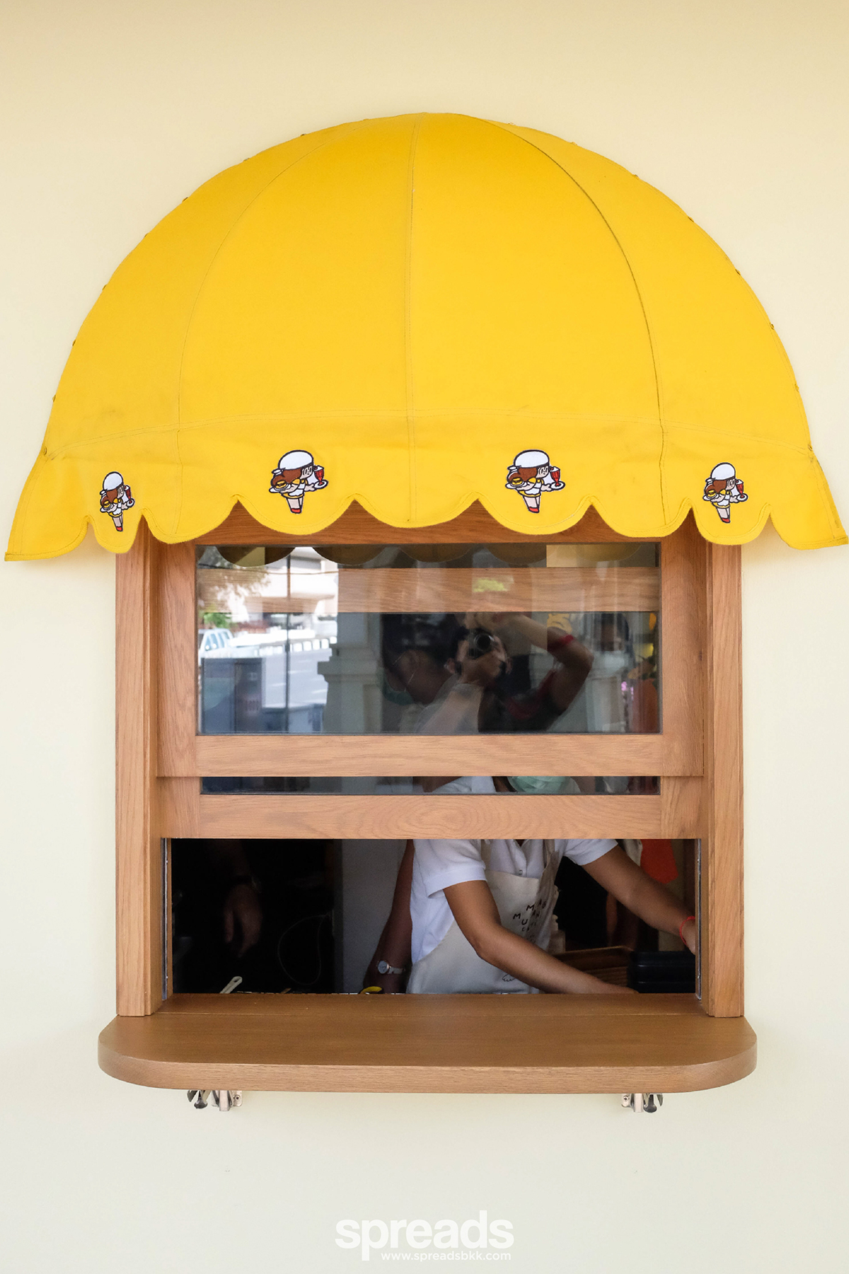 ความน่ารักยังไม่หมดที่ร้าน แต่ลามไปถึงขนมอย่าง Mamuang Baby Castella (110 บาท) วาฟเฟิลหยอดใส่พิมพ์รูปน้องมะม่วง ที่ทำในครัวเปิด ทำให้ร้านอบอวลไปด้วยกลิ่นหอมขนมใหม่ ๆ ตลอดเวลา นอกจากนี้ยังมีเครื่องดื่มอย่างกาแฟ ชาเขียว โซดา และเชคต่าง ๆ (95-140 บาท) ซึ่งไม่ว่าจะใส่ถ้วยร้อนลายมะม่วง หรือ cup sleeve ของถ้วยเย็น เราก็อยากเก็บไปหมด เห็นร้านน่ารัก ๆ แบบนี้ ความดีงามคือกาแฟอร่อยด้วย!